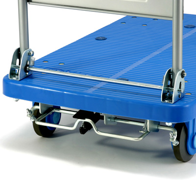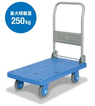 新設計の特殊配合樹脂を全長部に採用し、スチール製キャスターに比べて、大幅な静音化を実現、また始動抵抗・走行抵抗も低減しています。軽く押せて、滑らかな台車です。
